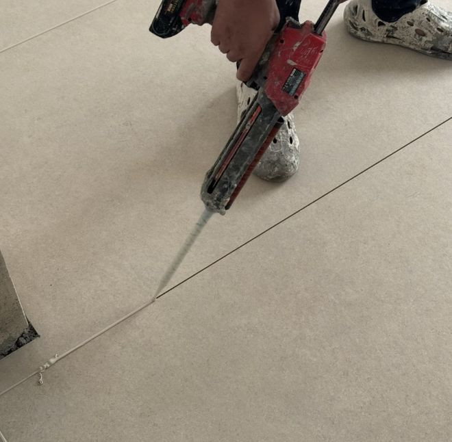 先说踢脚线,大多数人家里做不锈钢踢脚线都是胶粘,粘贴用胶量是否足够,是否贴合紧密,都要仔细看看,而美缝也是如此,很多地方漏打或者起翘,都会导致后期出现渗水等问题。